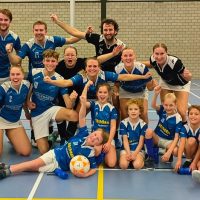 Het eerste speelde met de vertrouwde acht: Zoƫ, Robin, Nieko en Jerom in de aanval. Deena, Eva, Levi en Jelle in de defensie. Na het voorstellen aan het publiek, waarbij de pupillen van de E1 met hun sportieve voorbeelden mochten oplopen, leverde de eerste speelminuut al drie doelpunten op.